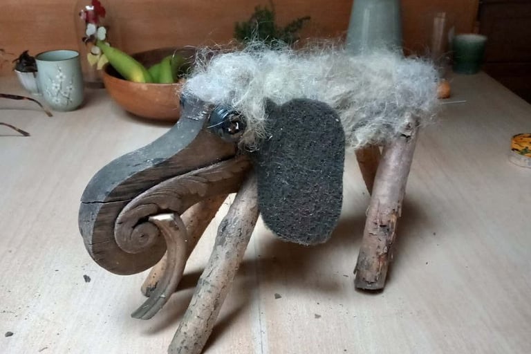 The Lindemans family quickly expanded with Boskoe (Forest Cow) and a fantastical elephant. This elephant needed wild fur, and that’s when the hair came into play. The elephant was soon baptized as RAFFHAAR, a name chosen by my godchild’s mother. Kudos to her!